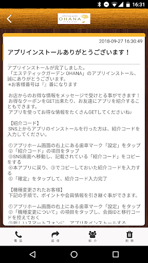 エステ-OHANAのアプリをSNSを通じてお友達に紹介する事ができます。