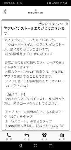 clovernailのアプリをSNSを通じてお友達に紹介する事ができます。