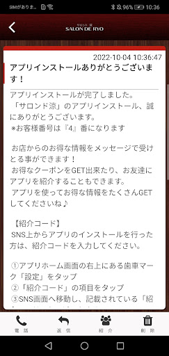 サロンド涼のアプリをSNSを通じてお友達に紹介する事ができます。