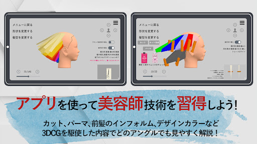 ベーシックを身につける他、例えばグラボブであれば頭部の形、髪の浮き沈み、毛流れ、痛みなどに応じてほぼ同じように仕上がります。