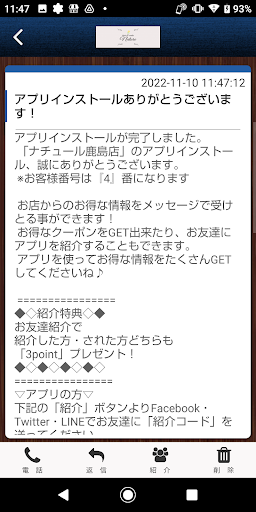 ナチュール鹿島のアプリをSNSを通じてお友達に紹介する事ができます。