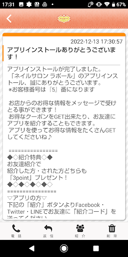 ラポールのアプリをSNSを通じてお友達に紹介する事ができます。