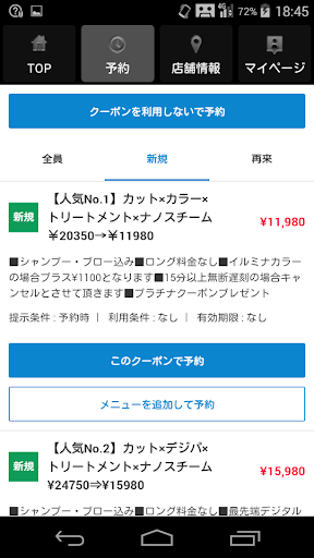 お得なクーポンが配信されます。ネット予約時にクーポン利用での予約も可能なので来店時もスムーズに施術頂けます。