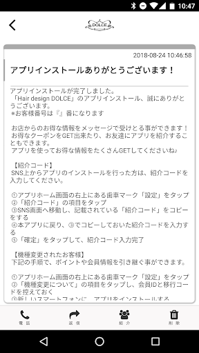 DOLCEのアプリをSNSを通じてお友達に紹介する事ができます。