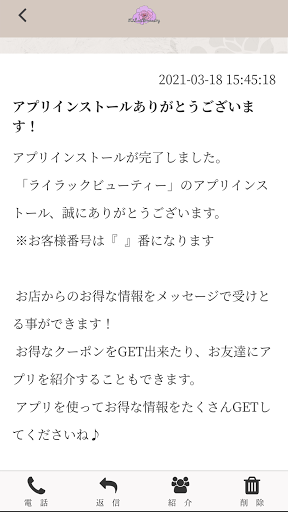 Lilac BeautyのアプリをSNSを通じてお友達に紹介する事ができます。