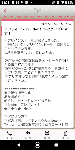 HEALのアプリをSNSを通じてお友達に紹介する事ができます。