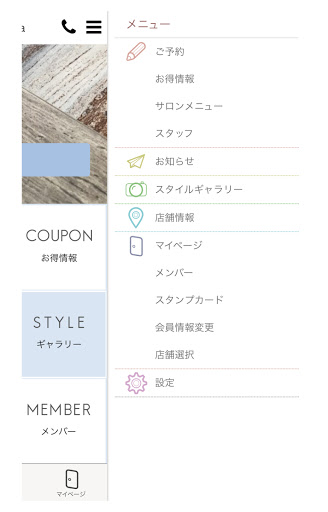 ▼マイページ機能で来店履歴や予約履歴がポイント保有数が確認できます。