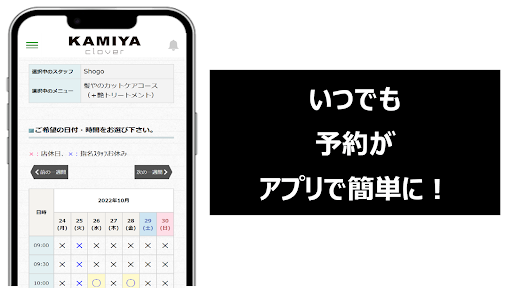 和風半個室美容室髪やclover(カミヤ クローバー)の公式アプリです。