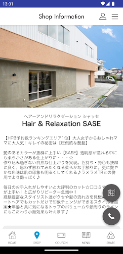 アプリを通して「Hair&Relaxation SASE(シャッセ)」「Hair&Relaxation Cinci(シンシ)」など、各サロンの新着情報やお得な情報をリアルタイムで受け取ることができます。