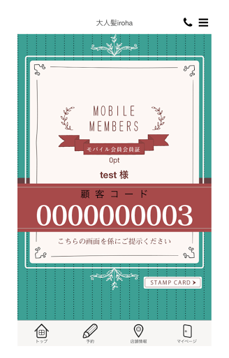 ▼マイページ機能で来店履歴や予約履歴がポイント保有数が確認できます。