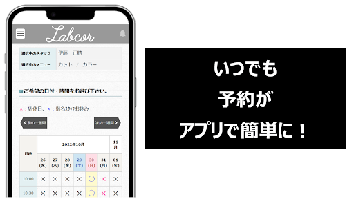 アプリをダウンロードして頂けると、24時間ネット予約がスムーズにできます。