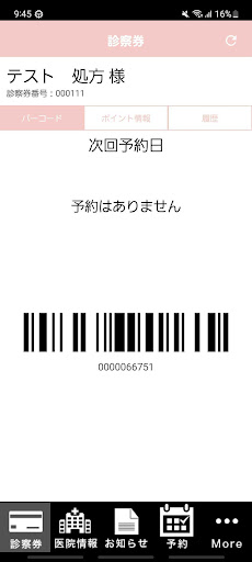 バーコードをかざすだけで受付出来るチェックイン機能、次回ご予約日時表示など、カードレスな診察券としてご活用頂けます。