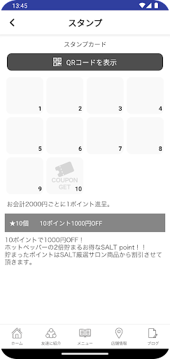 ご来店スタンプをためるとお得なクーポンが発行されます(ご利用条件がある場合がございます)