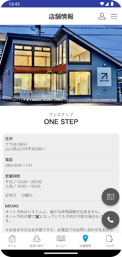 店舗のマップが表示され、地図アプリとも連携しているので、初めてのご来店の時も簡単に見つけることができます。