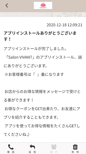 Salon VIVANTのアプリをSNSを通じてお友達に紹介する事ができます。