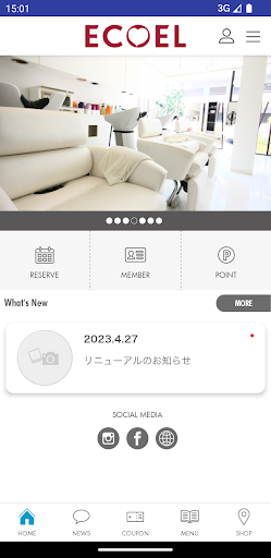 沖浜エリアのトータルビューティーサロンECOEL(エコエル)の公式アプリが登場。