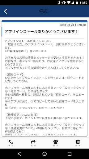 理容ほそだのアプリをSNSを通じてお友達に紹介する事ができます。