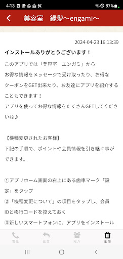 美容室 縁髪のアプリをSNSを通じてお友達に紹介する事ができます。