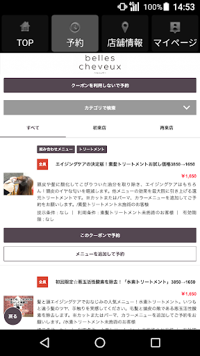 お得なクーポンが配信されます。ネット予約時にクーポン利用での予約も可能なので来店時もスムーズに施術頂けます。
