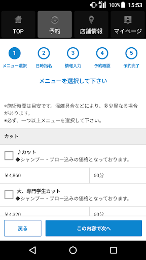 予約状況の確認やキャンセルがマイページ上から行えます。スタッフの登録が出来るので前もって担当者を登録しておけばマイページからスムーズな指名予約が可能です。