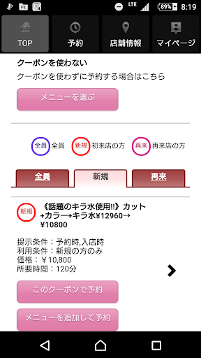 お得なクーポンが配信されます。ネット予約時にクーポン利用での予約も可能なので来店時もスムーズに施術頂けます。