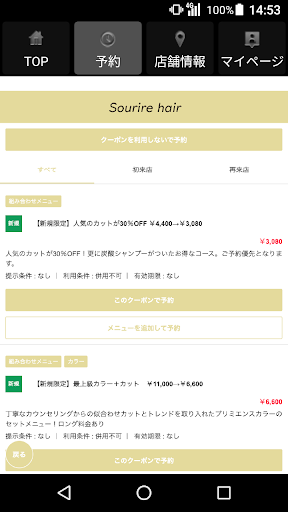 お得なクーポンが配信されます。ネット予約時にクーポン利用での予約も可能なので来店時もスムーズに施術頂けます。