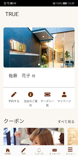 お客様専用ページから予約状況の確認や変更、ポイントの確認、お店で撮影したヘアスタイルを見ることが出来ます。