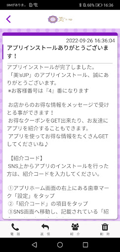美.s UPのアプリをSNSを通じてお友達に紹介する事ができます。