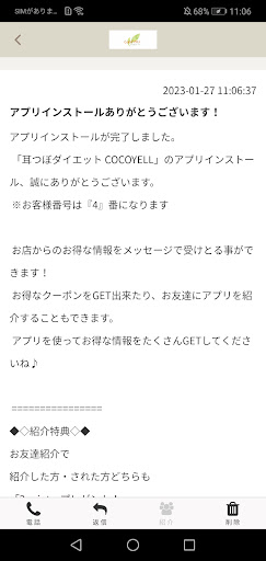 ココエールのアプリをSNSを通じてお友達に紹介する事ができます。