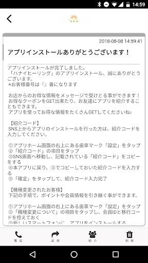 ハナイヒーリングのアプリをSNSを通じてお友達に紹介する事ができます。