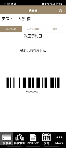 バーコードをかざすだけで受付出来るチェックイン機能、次回ご予約日時表示など、カードレスな診察券としてご活用頂けます。