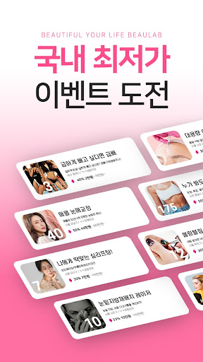 헤어, 탈모, 네일, 속눈썹, 다이어트, 헬스, 에스테틱, 마사지, 왁싱 등 전국 뷰티샵 이벤트까지 전달드립니다. 모든 뷰티는 성형어플 뷰랩에서 한 번에~ 해결하고 더 예뻐지세요!