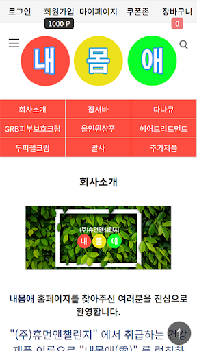 “내몸애(愛)” 의 뜻은 내 몸을 아끼고, 내 건강을 위해 필요한 제품들을 먹고 사용하여 건강한 삶을 지향하고, 자신과 건강한 가정을 만드는 것입니다.