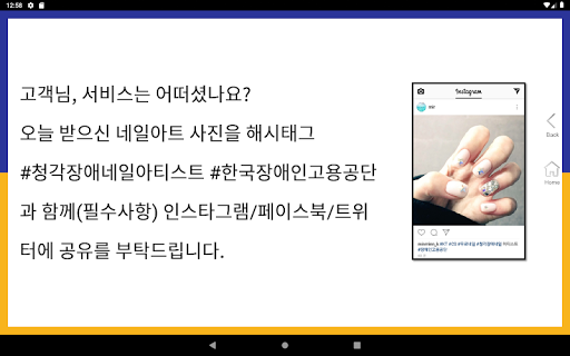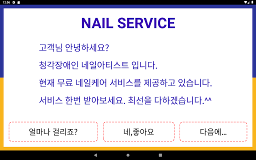 청각장애인 네일아티스트가 고객과의 소통을 위한 도구로 활용하도록 개인이 개발하였습니다.