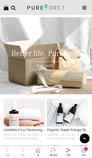 본 APP은 웹사이트 쇼핑몰과 100% 연동되어 있어