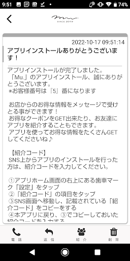 Mu.のアプリをSNSを通じてお友達に紹介する事ができます。