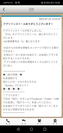 810のアプリをSNSを通じてお友達に紹介する事ができます。