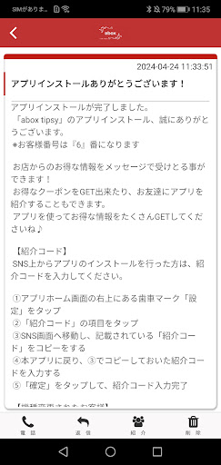 aboxtipsyのアプリをSNSを通じてお友達に紹介する事ができます。