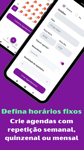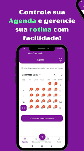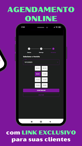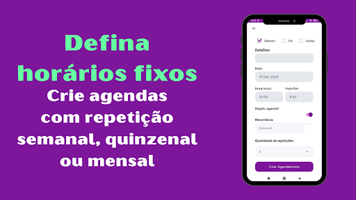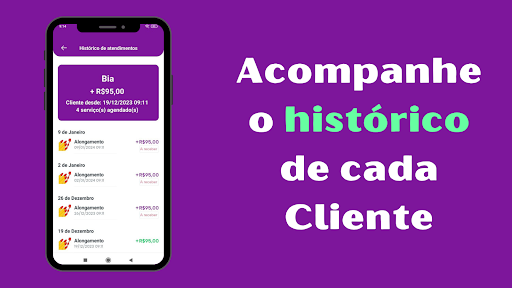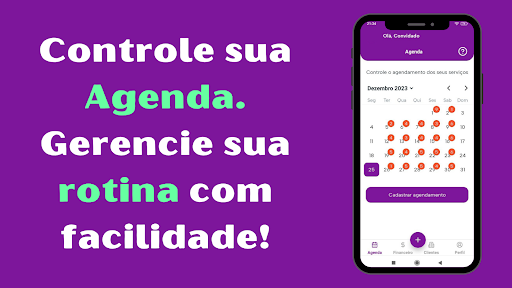 Uma das principais características do aplicativo é o “Agendamento”, que permite visualizar e gerenciar sua agenda de compromissos. Você poderá registrar os horários de atendimento, datas e serviços agendados, garantindo que sua jornada seja organizada, evitando conflitos. Além disso, você receberá Notificações de suas próximas agendas, para não perder nada!