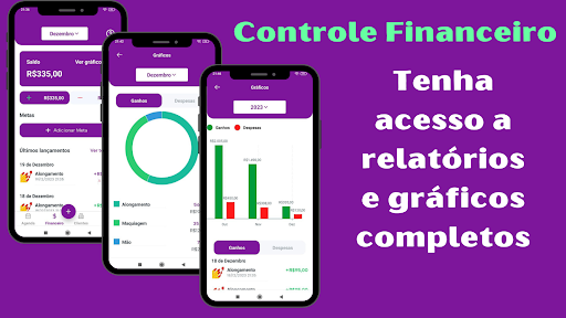 O “Controle Financeiro” é uma ferramenta valiosa para o gerenciamento das finanças. Você poderá registrar ganhos e despesas de forma fácil e detalhada, categorizando transações e visualizando relatórios claros sobre sua situação financeira. Você tem também o “Histórico Completo de Ganhos e Despesas”, oferecendo uma visão geral das transações passadas.