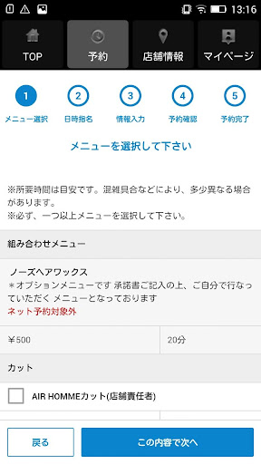 予約状況の確認やキャンセルがマイページ上から行えます。スタッフの登録が出来るので前もって担当者を登録しておけばマイページからスムーズな指名予約が可能です。又、マイページにお気に入りのヘアカタログを登録出来るので来店時に画像を見せるだけでイメージを伝えることが出来るので安心。