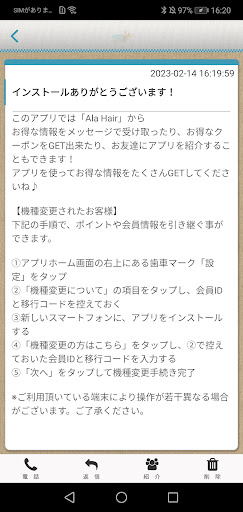 このアプリでは、AlaHairの最新情報の受け取りや便利な機能を使う事ができます。