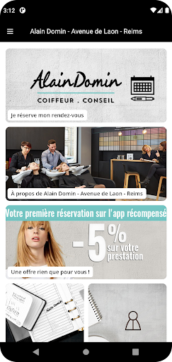 Alain Domin close to you every moment. Download this application to make your appointments online by choosing your services, your schedule and your favorite hairdresser. You can also prepare your visits by accessing our news, our specials, and all the practical information of your salon.