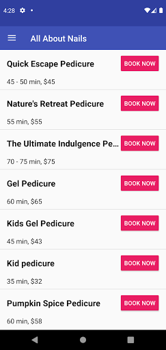 4. Services Menu: Browse the services we offer with times and prices.