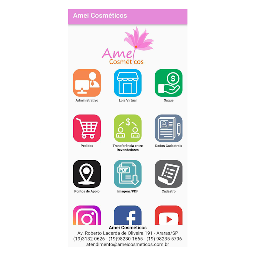 Nesse aplicativo você terá acesso a tudo que a Amei Cosméticos oferece. Dentro do aplicativo você encontrará os seguintes botões: