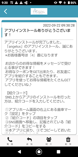 angeluxのアプリをSNSを通じてお友達に紹介する事ができます。