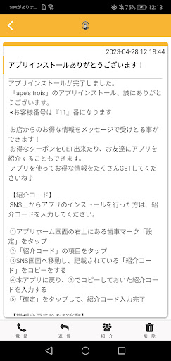 エイプストロワのアプリをSNSを通じてお友達に紹介する事ができます。