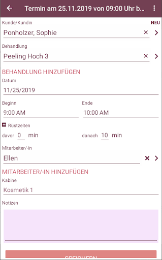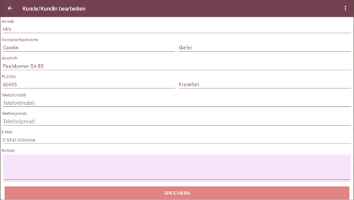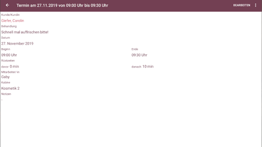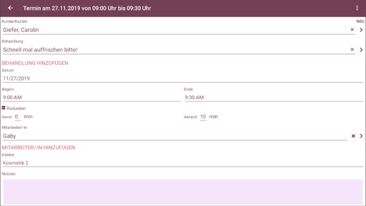 Kundeninfos und Notizen können direkt in der Kabine verwaltet werden.