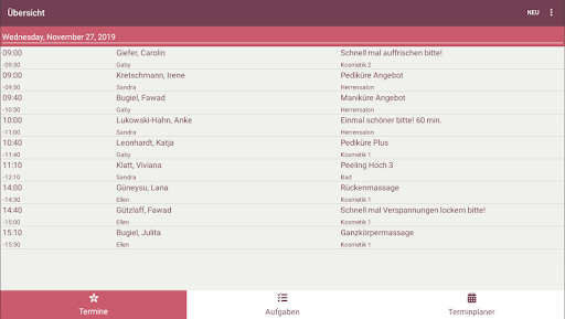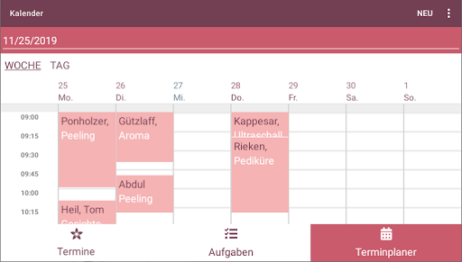 Ansicht und Bearbeitung der nächsten Termine und Aufgaben.