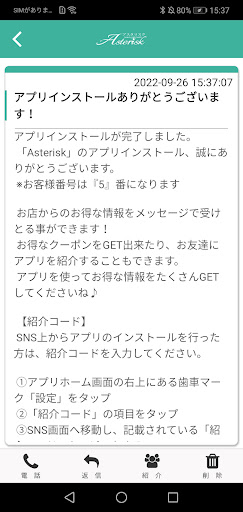 アスタリスクのアプリをSNSを通じてお友達に紹介する事ができます。
